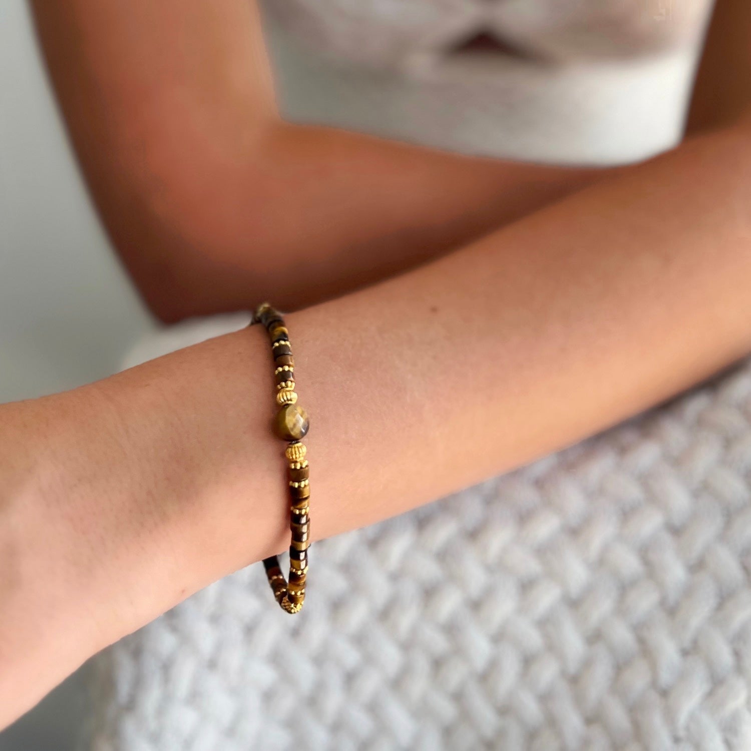 Our Maliha Tiger Eye Bracelet features high-quality Tiger Eye gemstones in a sleek, slip-on style, designed to be worn with confidence and strength that she represents. Just like her name 'Maliha' the Tiger Eye symbolises beauty, strength and is believed to balance the soul.